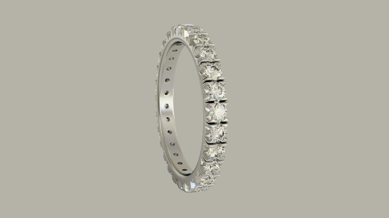 This style means no additional metal needs to be used between individual stones, and it also eliminates the use of prongs.